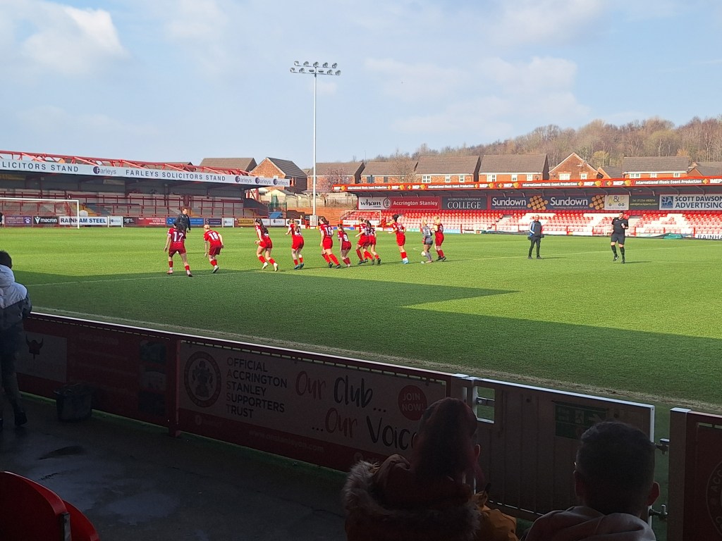 On Sunday, Andrea and I were joined by my mother-in-law and niece for our second visit to the Wham Stadium to watch the Accrington Stanley Women FC First Team in action. This time, it was a top-of-the-table clash in Division One North, with Accrington Stanley sitting in 3rd place and facing 2nd-place Penrith AFC Ladies. Penrith entered the match in an uncharacteristically poor run of form, having suffered two losses and a draw in their last three games. In contrast, Accrington were riding high on an impressive eight-game winning streak.