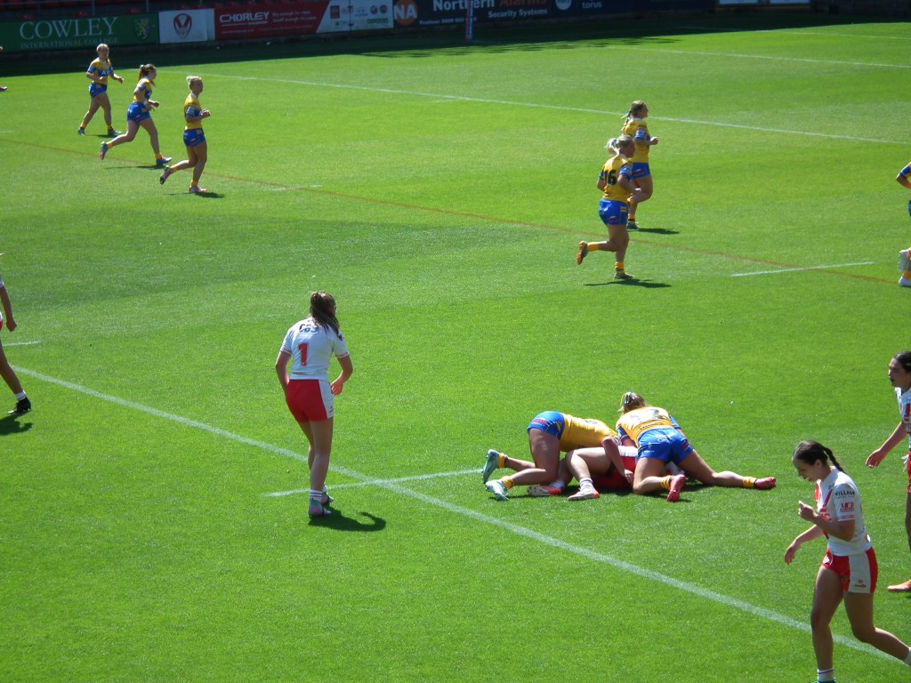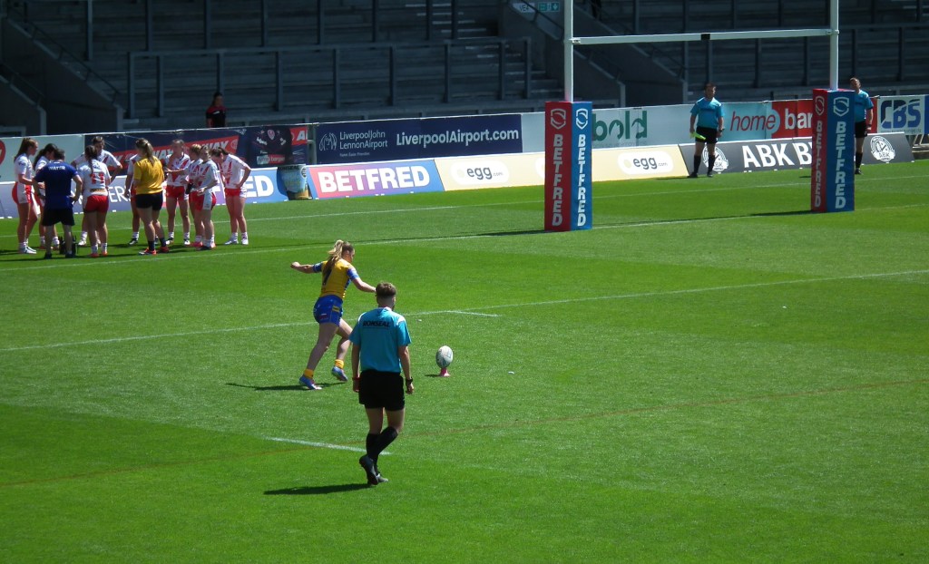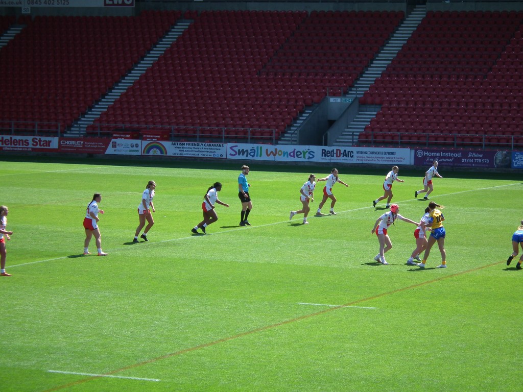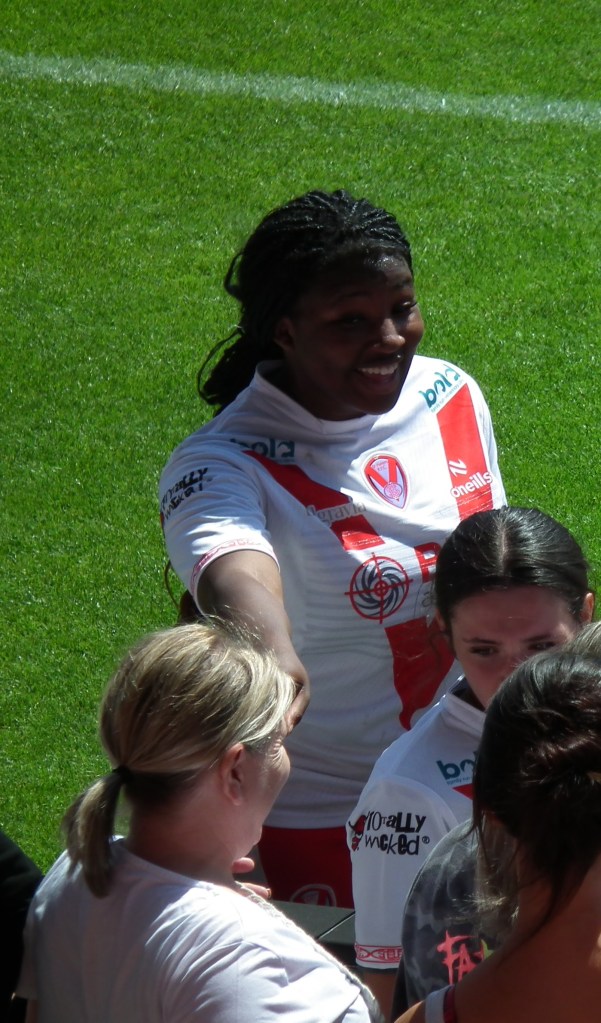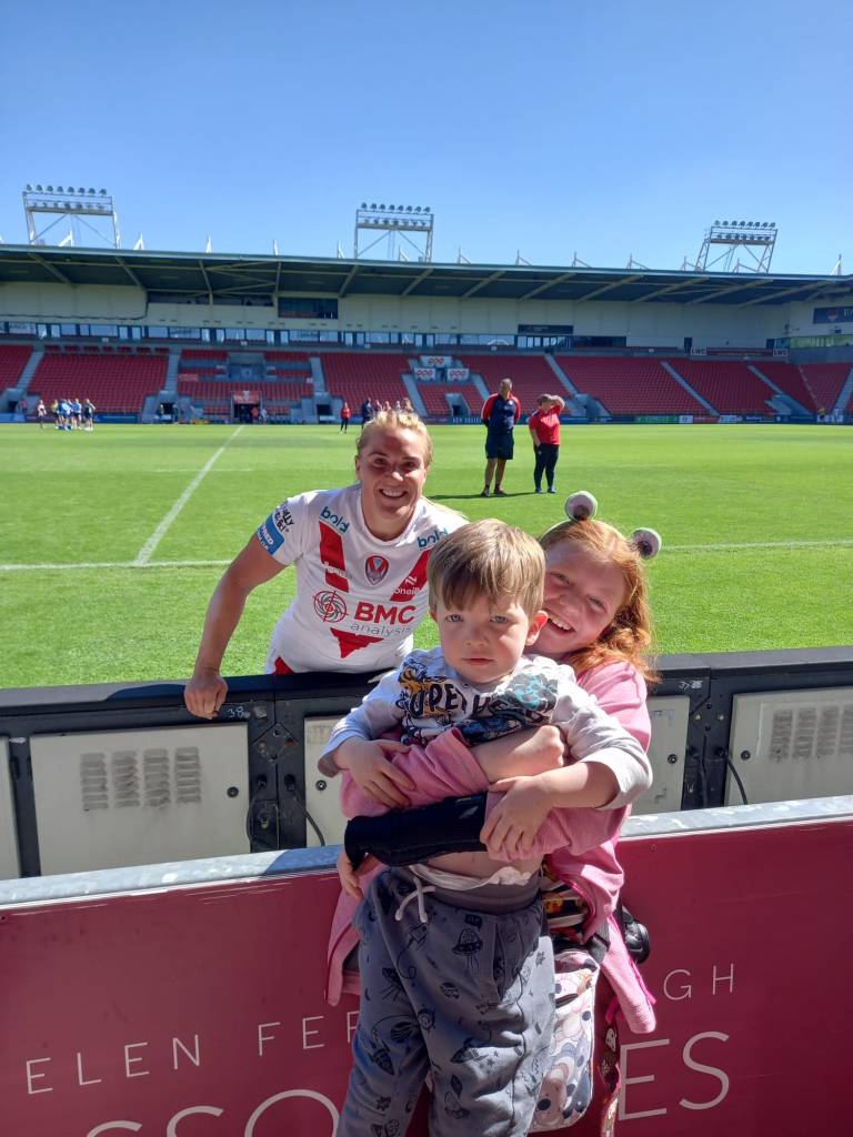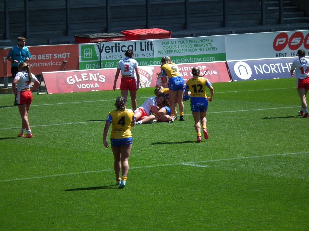 There was one part when music just suddenly started blasting, and it scared me! But then I started giggling because it was so random. Another funny moment was when two of the St Helens players picked up a Leeds player and carried her like a fish!🐟 (It’s against the rules, but it made me laugh so much).