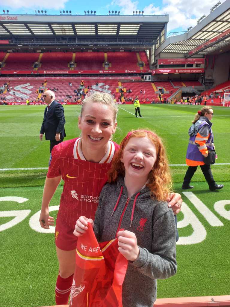 Andrea has had a soft spot for Lucy ever since our very first trip to Liverpool, when Lucy gave her first autograph, a moment Andrea still remembers and treasures. She was one of the first player Andrea could recognise, which instantly made her extra special to us.
