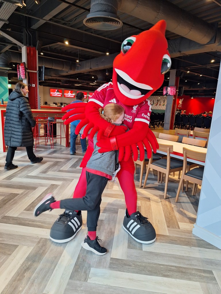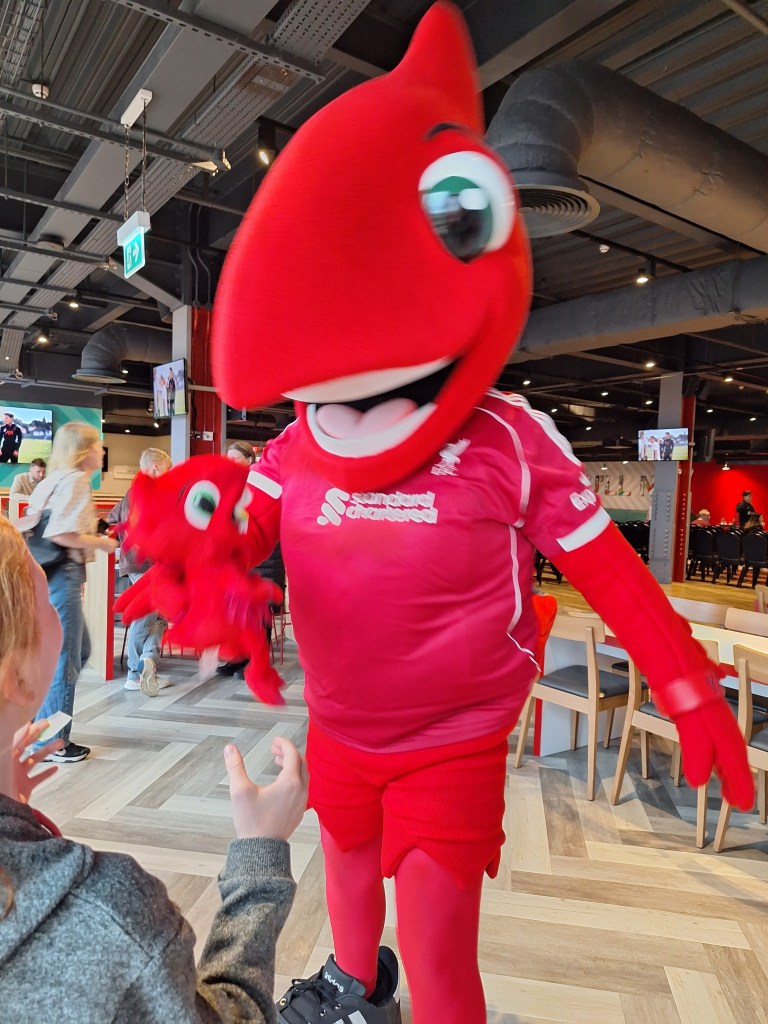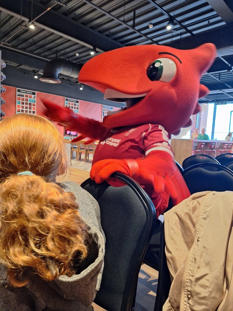 While I was getting settled in, Mum went off to grab a brew and came back with cookies 🍪 YUM. While we waited for the event to begin, I spotted Heather (who I mentioned before in my blog when I was a mascot). We chatted about our summer holidays and her trip with the Liverpool squad to Ireland for pre-season. One of her highlights was the safari, especially feeding frozen peas to the monkeys. That really made me laugh.